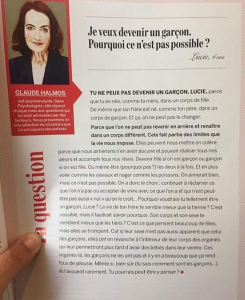 J’ai travaillé avec des personnes en transidentité, et je côtoie deux ados qui se définissent comme non binaire. Encore une fois je respecte cela.