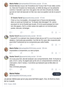 Voici les messages relevé par quelques amis ou par moi-même au cours de l’année 2025, alors même que Marie Peltier et Stéphanie Lamy ont annoncé porter plainte contre moi pour diffamation et harcèlement, et alors que j’ai annoncé à mon tour des poursuites contre elles.