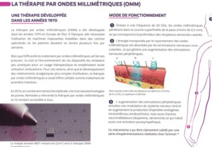 Le bracelet Remedee revendique l’héritage de la thérapie par ondes millimétriques, une pratique expérimentée dans les années 1970 en URSS et peu à peu tombée dans l’oubli. Selon la brochure de l’entreprise, les OMM stimuleraient les terminaisons nerveuses sous-cutanées, ce qui induirait une production d’endorphines et d’autres neuromédiateurs (dopamine, sérotonine), avec un effet antalgique durable.