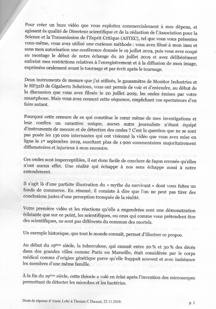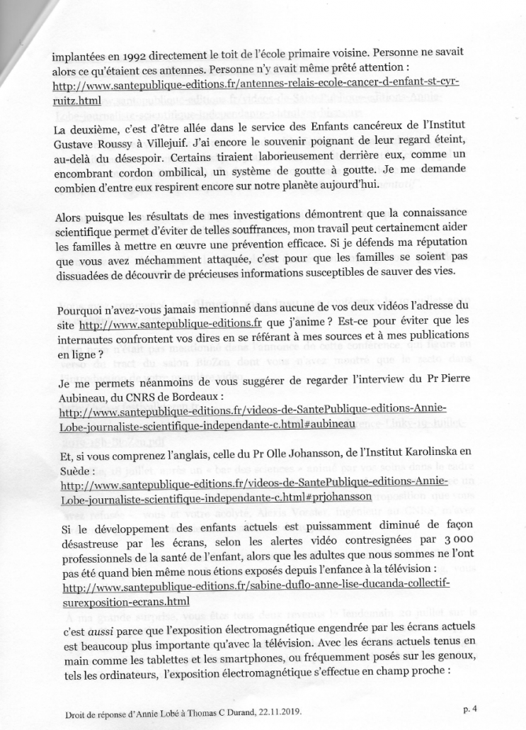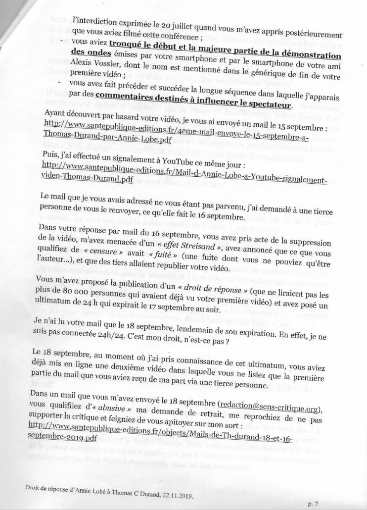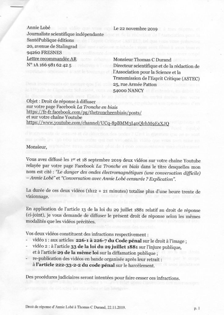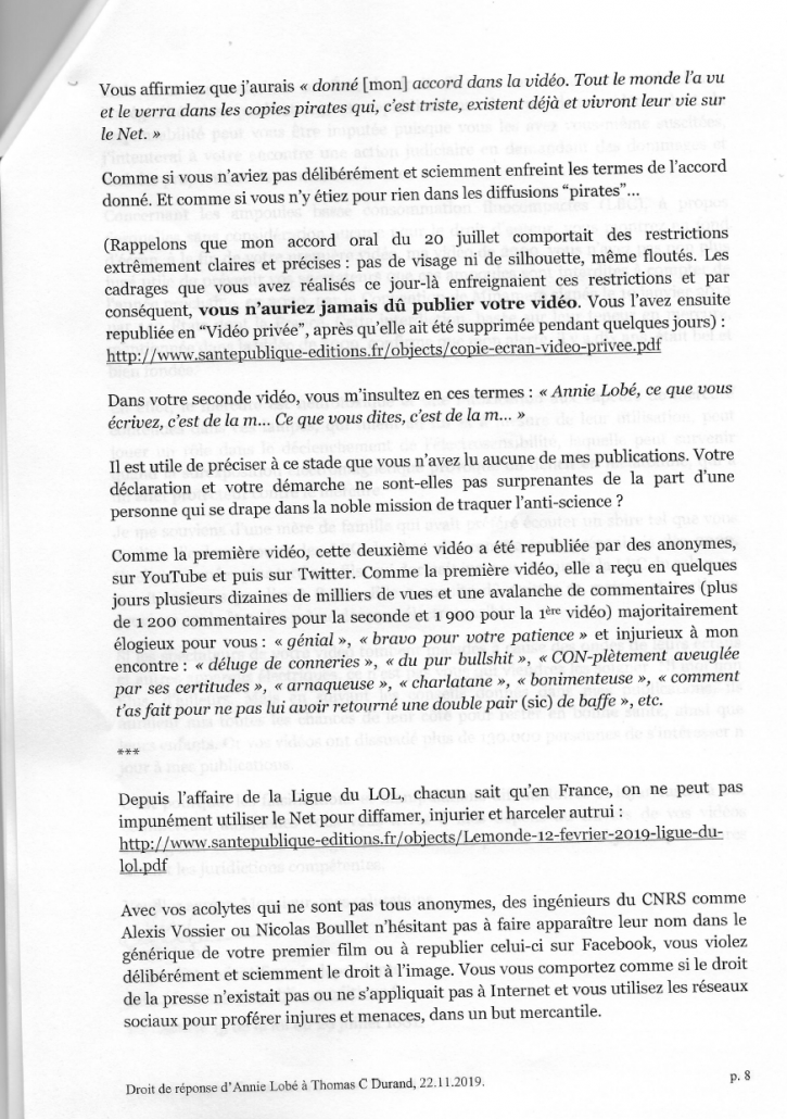 « Si l’on ne se crispe pas sur la nature diffamatoire de cette attaque, la meilleure attitude pour faire progresser le débat est de nous questionner ensemble : pourquoi notre pratique, dérange-t-elle aussi fortement ceux qui veulent lui dénier toute valeur, voire dénoncer sa « dangerosité », jusqu’à exiger que les médecins et professionnels de santé qui l’utilisent ne puissent plus faire état de leur titre professionnel ?