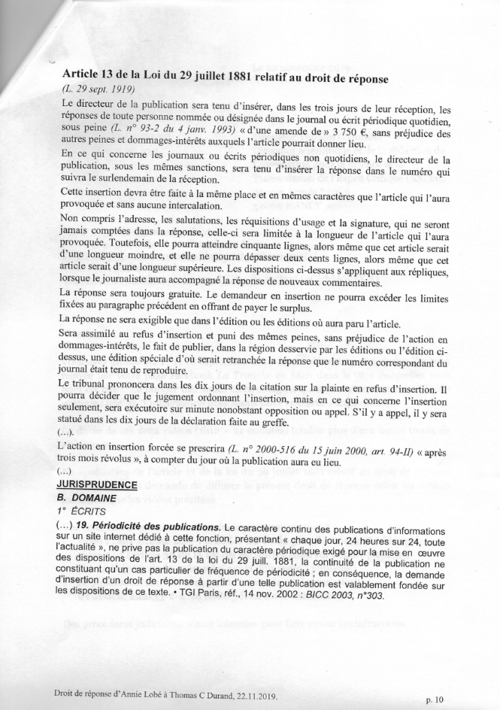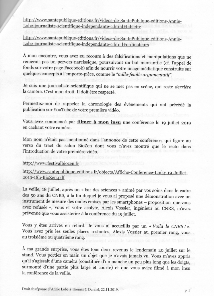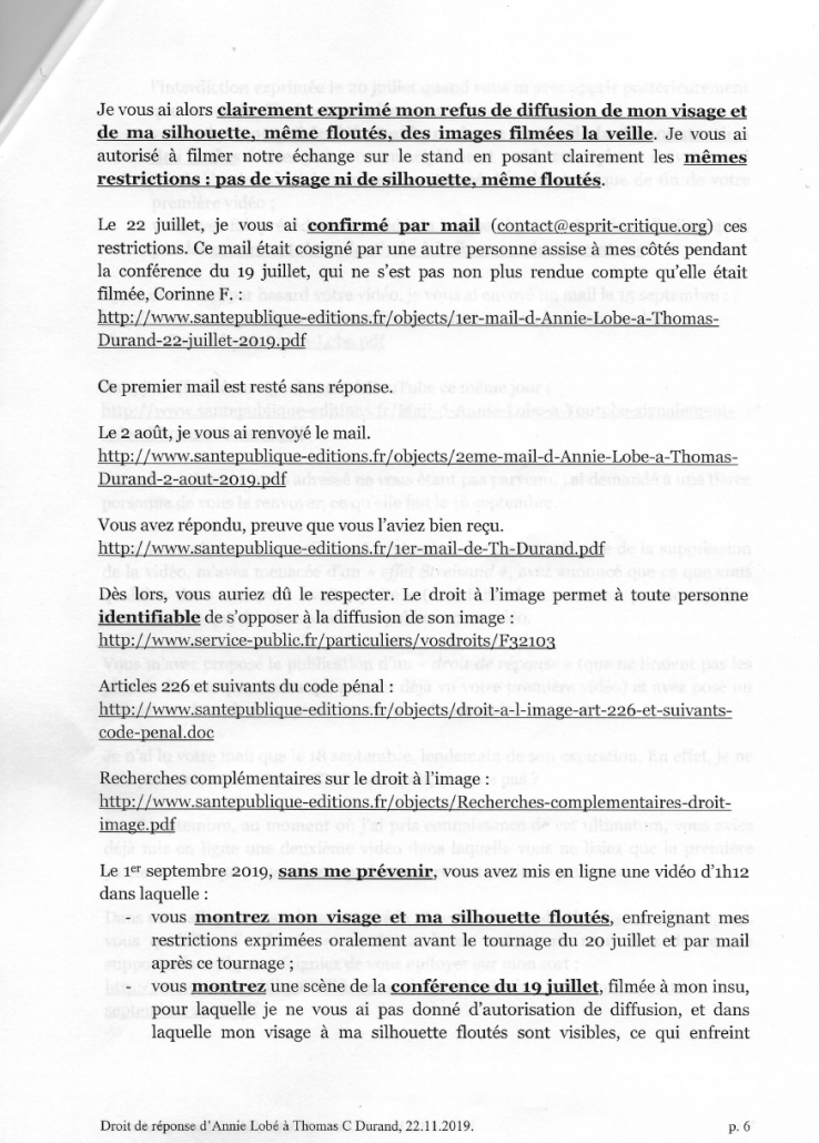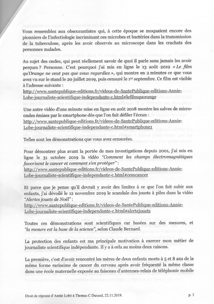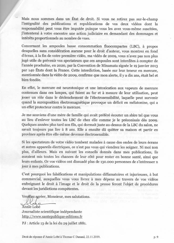 « Si l’on ne se crispe pas sur la nature diffamatoire de cette attaque, la meilleure attitude pour faire progresser le débat est de nous questionner ensemble : pourquoi notre pratique, dérange-t-elle aussi fortement ceux qui veulent lui dénier toute valeur, voire dénoncer sa « dangerosité », jusqu’à exiger que les médecins et professionnels de santé qui l’utilisent ne puissent plus faire état de leur titre professionnel ?