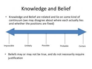 Aucune réelle frontière ne sépare d’un côté les connaissances indéniables et de l’autre les croyances douteuses. Il y a au contraire un continuum, et donc une infinité de nuances, entre d’un coté « je sais » et de l’autre « j’en sais rien du tout, mais je vais supposer X de manière totalement arbitraire ». Mais cette infinité de nuances est bel et bien une nuance, et la différence existe ! Ce qui sépare le choix arbitraire de croire X de la connaissance raisonnable en Y, c’est la confiance qui existe dans la méthode mise en oeuvre pour conclure.