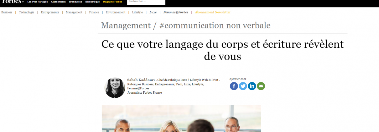 Le magazine Forbes fait la promotion dans cet article d’un charlatan dont le sabir vise à nous impressionner : « L’écriture permet donc de définir une formule tempéramentale au sens où Empédocle ou Hippocrate l’aurait compris. Elle définit ainsi la constitution de ses agrégats mentaux, émotionnels et instinctuels. »