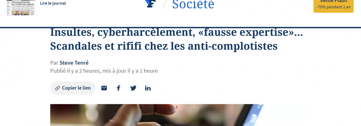 La réaction a été de se ranger derrière la lecture offerte par Marie Peltier (Stéphanie Lamy a été beaucoup plus discrète dans sa réaction, au moins dans un premier temps, et je crois qu’en retour elle a été relativement épargnée par la polémique). Dès lors, les rôles étaient distribués et j’ai été dépeint comme un harceleur alors que mon action consistait à réagir au harcèlement de deux femmes sceptiques malmenées par Mesdames Peltier et Lamy. Ce type d’accusation a été porté en masse et j’ai observé qu’un certain nombre de comptes issus de la complosphère ont pris fait et cause pour Mmes Peltier et Lamy. À ce stade il faut se garder d’en conclure quoi que ce soit, puisque semer la confusion est l’une des tactiques fétiches des complotistes, mais un rapprochement ne semble plus une idée aussi absurde qu’il y a un mois, et c’est alarmant.