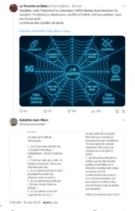 J’ai peut-être raté les moments où vous prenez vos distances avec des interprétations complotistes des milieux où vous intervenez régulièrement ; surtout aiguillez-moi vers vos propos sérieux, mesurés, informatifs et utile à l’édification de la culture scientifique du grand public en pleine crise de la désinformation.