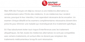 En aparté, je ne comprend pas le rapport entre le titre de cette section (Le désir d’une « autre » médecine) et son contenu. Bref. Je poursuis avec cette même section :