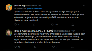 Je faisais juste remarquer que si l’on applique les récentes déclarations de M. Aberkane à sa publication, cela signifie que le Pr Moore était le tâcheron interchangeable de l’étude et Aberkane le grand (co-)superviseur.