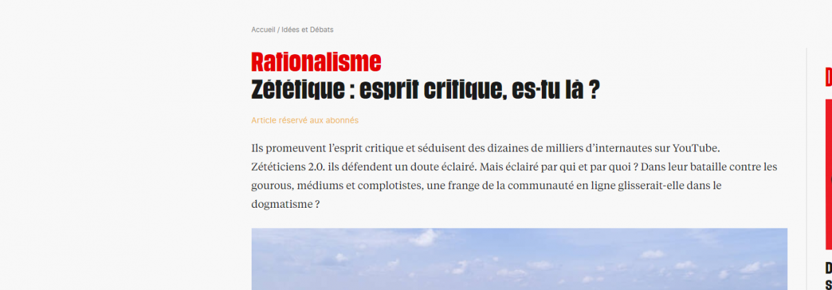 Elisa Thévenet, de Libération, a décidément tout compris à la zététique.