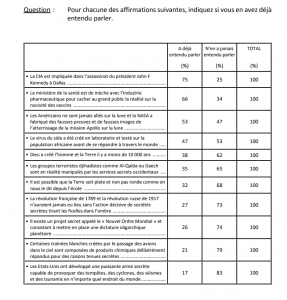 Dans un second temps, il me semblait que le but de l’étude était plutôt de déterminer des profils de complotistes et d’observer s’il y avait des interconnexions et pas tellement de sortir des chiffres anxiogènes. Du coup, j’avoue que les chiffres pour moi sont déjà à prendre avec des pincettes, en plus de ce que vous avez pu montrer.